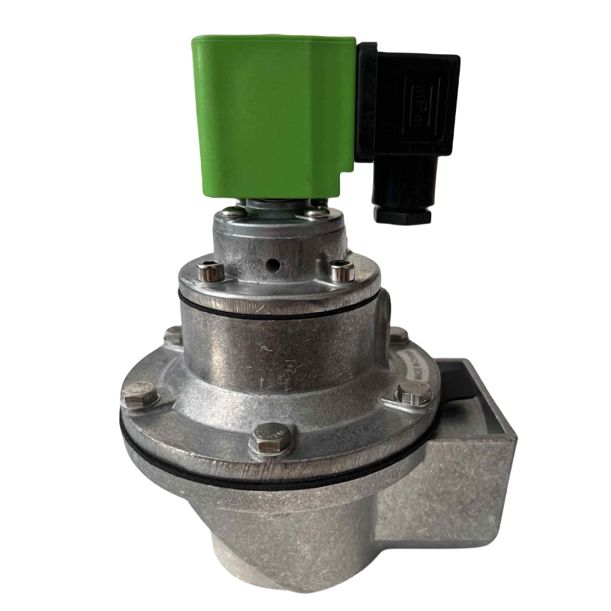 The DMF-Z-40S pulse valve is a right-angle valve used in the pulse-jet cleaning system of pulse-jet baghouse dust collectors. It is highly effective for cleaning a wide range of filter elements, including round bags, envelope bags, irregularly shaped bags, and metal fibre bags, as well as filter cartridges, ceramic tubes, and sintered plastic plates. The pulse valve can be connected to air reservoirs and dust collector blowpipes to create the required cleaning air pulses.