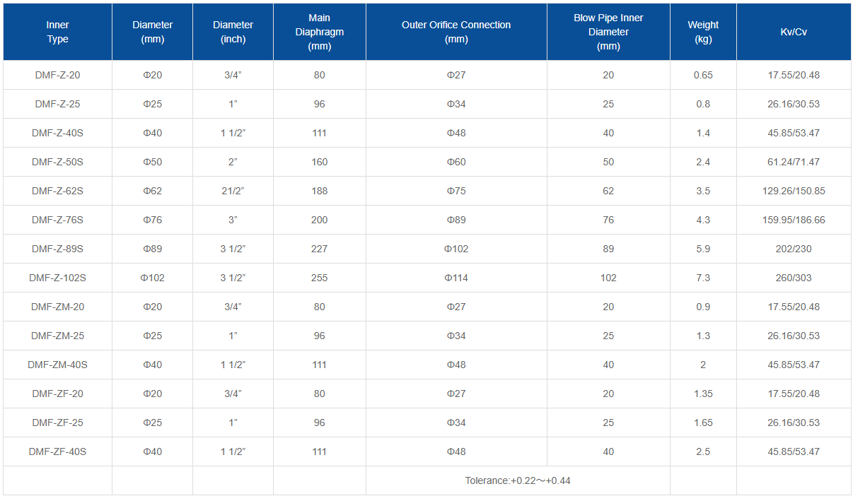 The valve body and cover of the DMF-Z right-angle electromagnetic pulse valve are manufactured from die-cast aluminum alloy. After surface treatment, they exhibit excellent corrosion resistance. The diaphragm and sealing gasket are vulcanized and composite using new processes. The electromagnetic pilot head is composed of magnetic materials and stainless steel magnetic shielding materials. Springs and fasteners are all made of stainless steel. The air distributor (air chamber) connection pipe and the dust collector blowpipe are inserted into the valve inlet and outlet respectively. Both ends are sealed by tightening the compression nuts. Valves are available in three specifications—20, 25, and 40S—for selection in pulse-jet baghouse dust collectors with various air handling (purification) capacities. The valve body and cover are die-cast for high density, with a transparent lacquer coating enhancing corrosion resistance. The diaphragm seal employs a metal-rubber composite for excellent rigidity and leak-free performance. The electromagnetic pilot head delivers strong magnetic pull with responsive and reliable operation. The valve exhibits superior opening performance, opening reliably at 85% of rated voltage. It also demonstrates excellent closing performance, sealing reliably at 0.15 MPa air pressure.