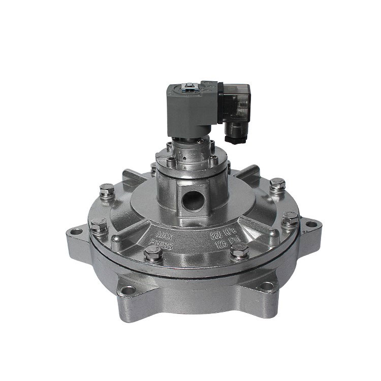 Its characteristic is that the air inlet and outlet pipes of the right-angle valve are at a 90° angle. The valve body and bonnet are die-cast using aluminum alloy material. After surface treatment, they exhibit excellent corrosion resistance. The diaphragm and sealing gasket are produced using a vulcanized composite process. The raw materials for the electromagnetic pilot head consist of high-efficiency magnetic materials and stainless steel magnetic shielding materials.Critical components like springs and fasteners are made of stainless steel. Connection method: The air distributor (air tank) pipe and the dust collector's blowpipe are inserted into the valve's inlet and outlet respectively, sealed by compression nuts at both ends.